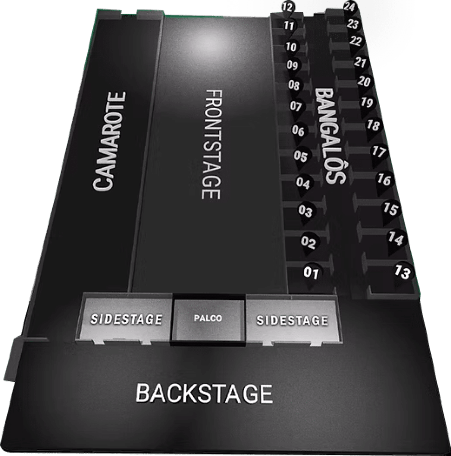 Espaços exclusivos para grupos, com mais conforto, comodidade e localização privilegiada. As reservas também não incluem open bar ou consumação — são áreas especiais dentro do evento, ideais para quem busca uma experiência mais reservada.